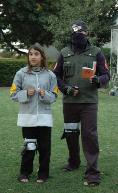 Zoe is dressed as Hinata Hyuga, I'm dressed as Kakashi Hatake , both from the Naruto TV show, and Mira is dressed as a 1920s Flapper Dancer.