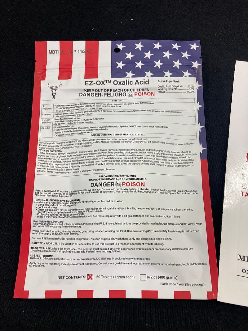 The new EZ-OZ oxalic acid pellets & powder are FDA approved for use at the 2g level, which is an example of the slow move forward.