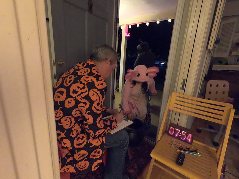 You can see the clipboard I use to write down what the kids tell me they are dressed as.
