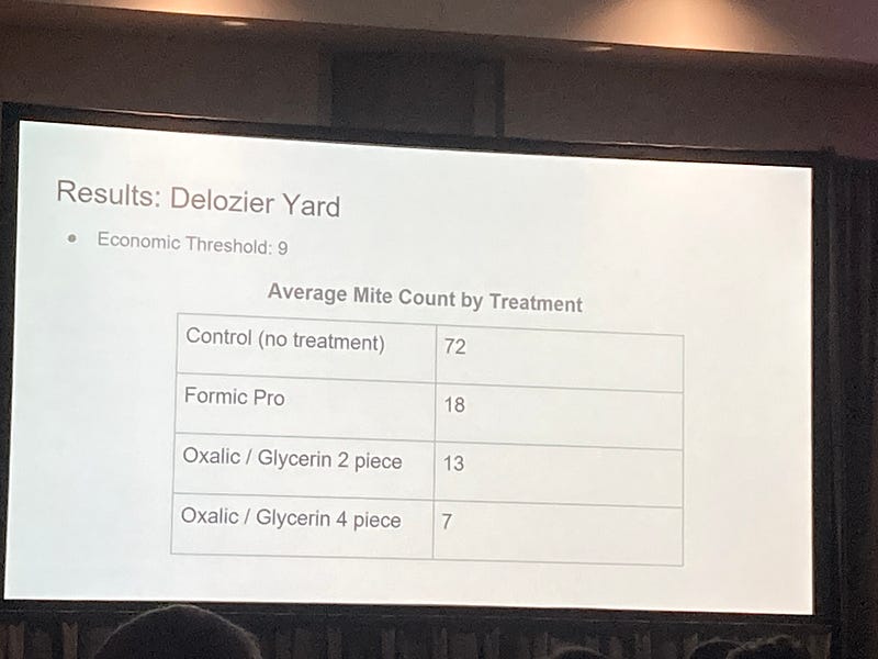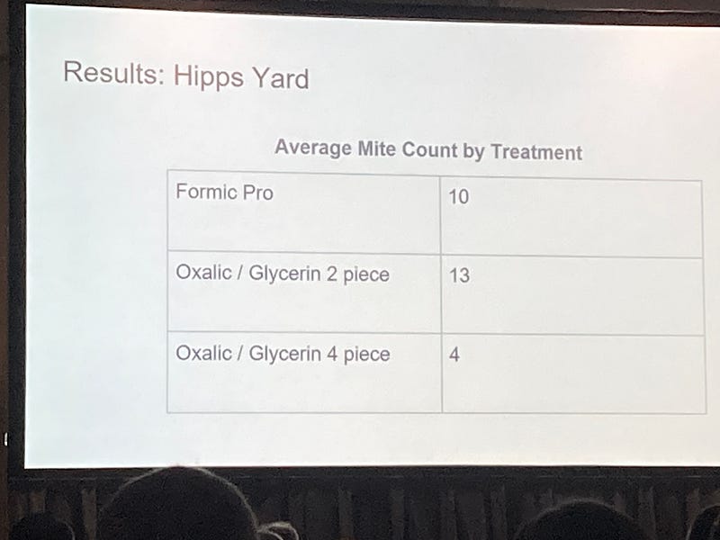 He stressed the key is starting with a low mite level. If you start with a high mite level, it will not reduce it.