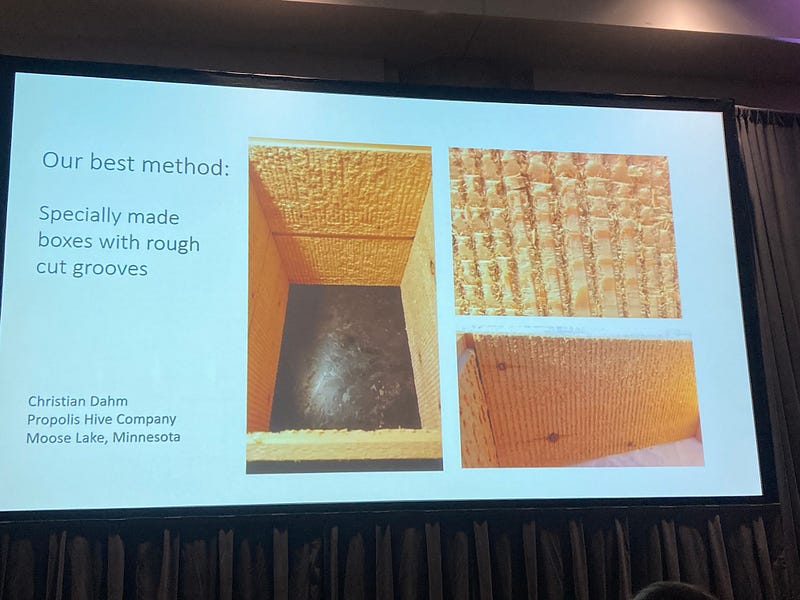 Use of rough box interiors was best for propolis envelope. Rough meaning seriously rough, with deep grooves, not simply scratched.